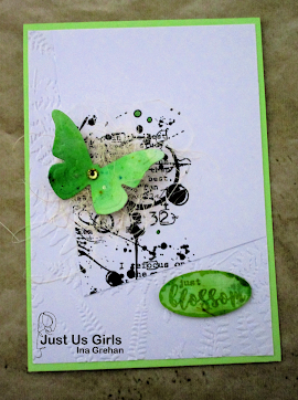 My take is that Ina's card is better - more contrast and prettier color. Here's Ina's inspiration - go to Just Us Girls and check it out: